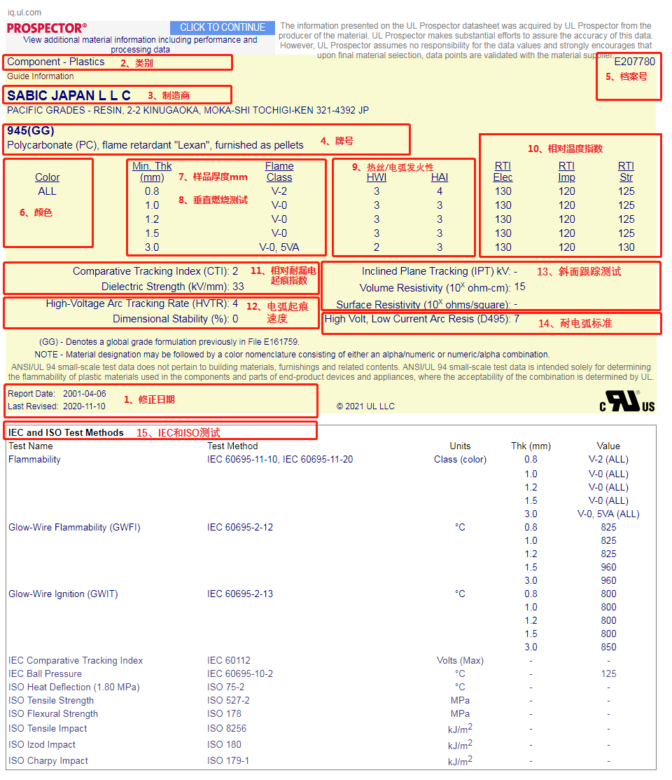 如何讀懂UL黃卡(SABIC PC-945黃卡)